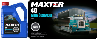 Maxter 25W50 Grueso API CF/SG, es un lubricante viscoso multigrado desarrollado con agentes de hinchamiento de sellos y aditivos especiales, diseñado para disminuir el consumo de aceite en equipos de trabajo pesado diesel con alto kilometraje, en el cual la reparación puede esperar.MAXTER 40/50 Monogrado API CF