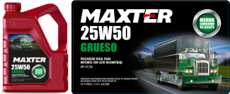 Maxter 25W50 Grueso API CF/SG, es un lubricante viscoso multigrado desarrollado con agentes de hinchamiento de sellos y aditivos especiales, diseñado para disminuir el consumo de aceite en equipos de trabajo pesado diesel con alto kilometraje, en el cual la reparación puede esperar.MAXTER 40/50 Monogrado API CF